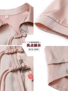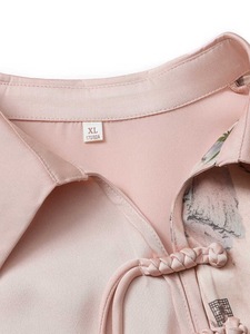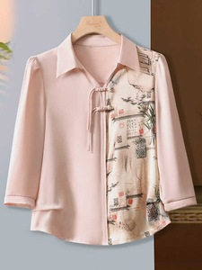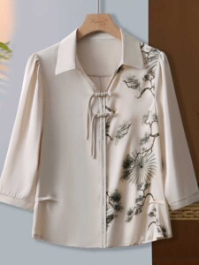 2024年春の新作ファッショナブルな年齢軽減プリントスリムシャツトップス中年母親向けVネック9分袖シャツ