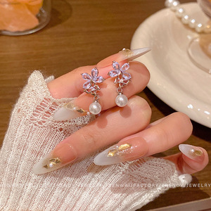 シルバー針ジルコンフラワーパールイヤリング女性のデザインニッチ気質蝶イヤリングライト高級ファッションパーソナライズされたイヤリング