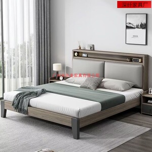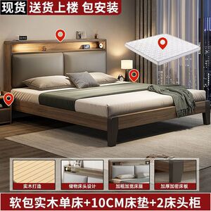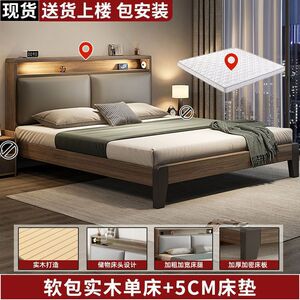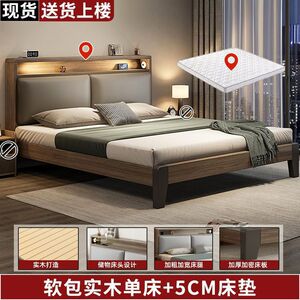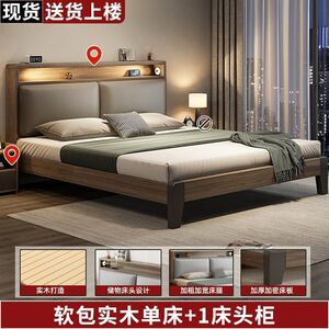 实木床简约现代1.5米家用软包双人床经济型出租房用1.2米单人床架