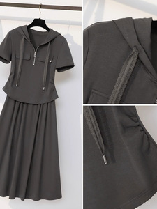 大きいサイズmm夏服、ファッショナブルでスリムなmmスーツ、レディース夏用フード付き半袖Tシャツ、ハイウエストスカート2枚
