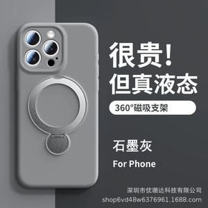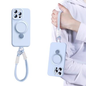 iPhone17PROMAX対応回転スタンド付き液体シリコン製スマホケース、ストラップ付き、Apple16用耐衝撃保護ケース