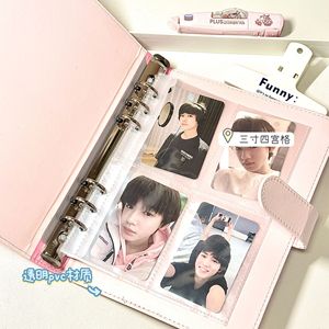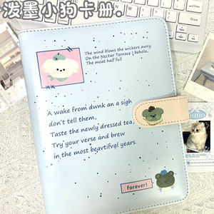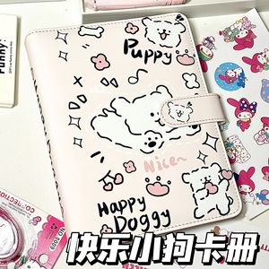 PU カードブックライン子犬 A5 4 グリッド小型カードレザー収納ブック取り外し可能なバインダーポストカードフォトアルバム