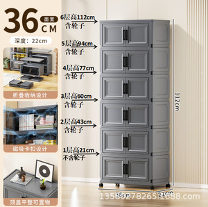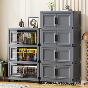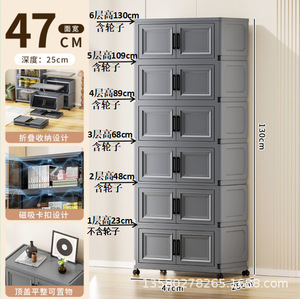 プラスチック折りたたみ収納キャビネット家庭用多層両開きドアグレーワードローブおもちゃ収納ボックス収納キャビネットスナックキャビネット