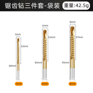 ラウンドハンドル鋸歯状ツイストドリル高速度鋼チタンメッキ多機能木工鋸歯状プルフラワーソーと溝ドリル6個セット