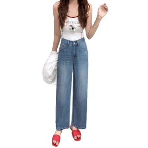 ブルーウェイストランドスタイルジーンズワイドレッグパンツレディース超薄型2025夏新作イン小柄9点ストレートレッグ