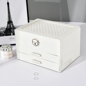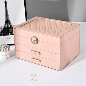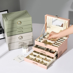 新しい三層フリップトップジュエリー収納ボックス、ロック付きクリエイティブでファッショナブルなジュエリーボックス、大容量の絶妙な収納ボックス