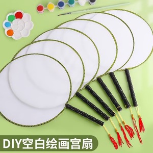 空白の丸い扇子子供用 DIY 手描き落書き扇子手作り宮殿扇子絵画扇子古代スタイルの丸い扇子宮殿扇子
