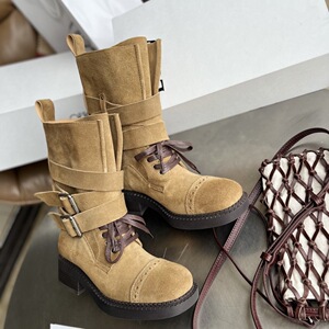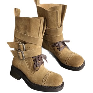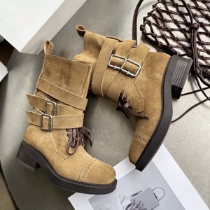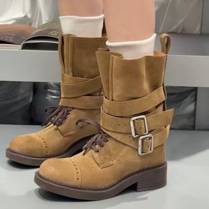 パリ 厚底ミッドカーフナイトブーツ レディース 本革 バックルストラップ バイクブーツ 英国風 マーティンブーツ ウエスタンブーツ