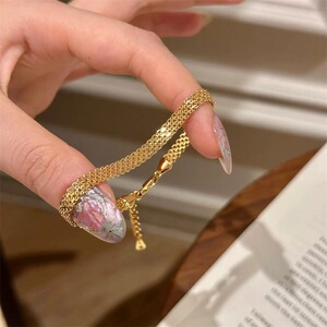 中古織りゴールド時計ストラップブレスレット女性用電気メッキ 18K リアルゴールドスネークボーンチェーンライト高級ハイエンドハンドジュエリー