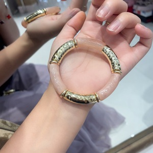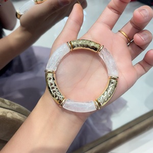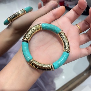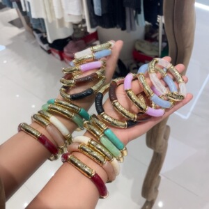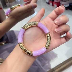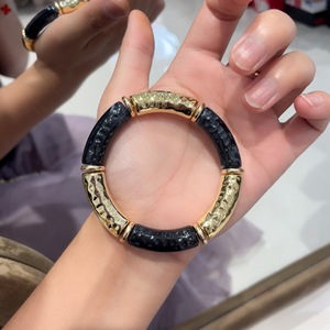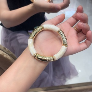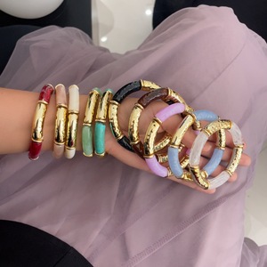 ヨーロッパとアメリカのファッショナブルなパーソナライズされたアクリルエルボブレスレット湾曲した竹管マルチカラーレトロ大理石ブレスレット卸売女性用
