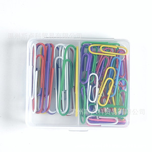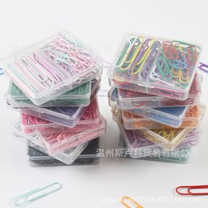 国境を越えた売れ筋のカラフルな 28mm50mm プラスチック製ペーパークリップ 2 コンパートメント組み合わせ箱入りキャンディーカラーのペーパークリップ卸売