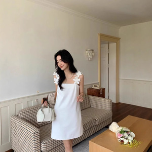 2025夏季新款南油val韩系简约设计感减龄气质花朵吊带连衣短裙女