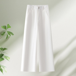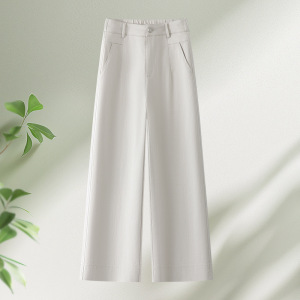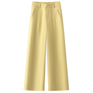 人気の小柄な女性向け九分丈テンセルコットンストレートパンツ、2025年初秋新作、ハイウエストカジュアルナローワイドパンツ