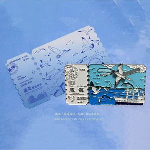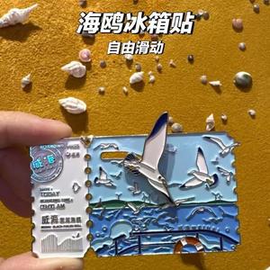 威海冷蔵庫マグネット ブラックテールカモメ スライド式高価値金属製文化クリエイティブ旅行写真チェックインコレクションお土産