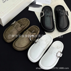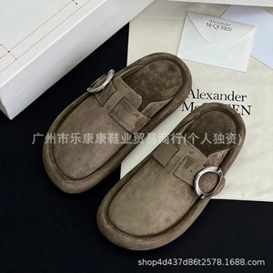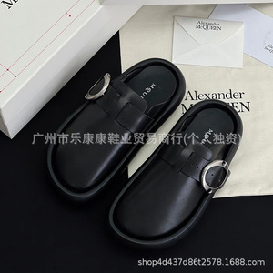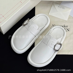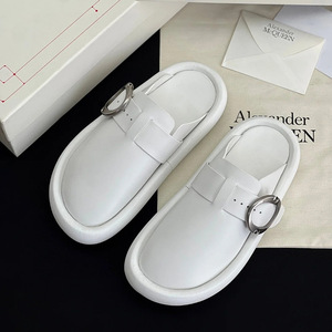 マックイーン ビルケンシュトック シューズ レディース 2025 夏新作 厚底スリッパ ベルトバックル つま先ハーフスリッパ ホワイト ファットパンシューズ