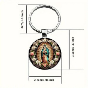 レトロな絶妙な美しい花と美女のパターンラウンドガラス合金ペンダントキーホルダーメーカー直販