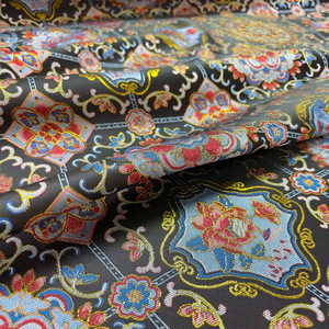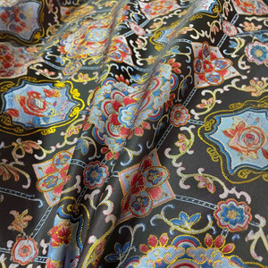 Li Dexi Song Brocade 148 ウェイドア ホーユンティアンファ ブロケード ブラック ゴールド織物生地 ベスト ジャケット チャイナ シルク