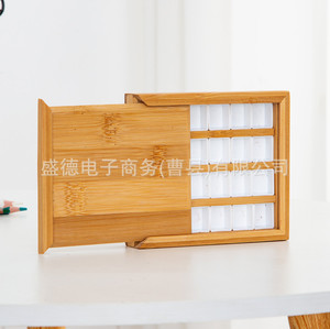 竹木水彩颜料盒空盒36格户外便携调色盒固体颜料盒指甲油盒调色盘