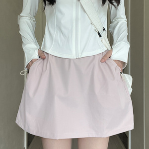 女性用グレー速乾性カーゴキュロット、夏用ハイウエストAラインアイスシルクヒップカバーショートスカート、小柄な人向け露出防止スカート