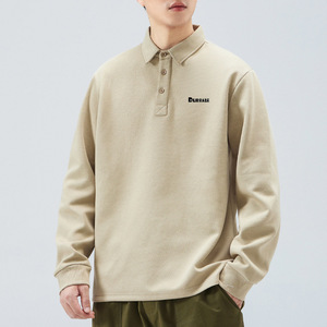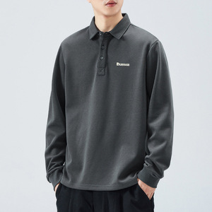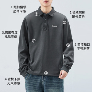 登捷男装POLO衫男2025春秋季高端纽扣翻领上衣长袖T恤男字母刺绣