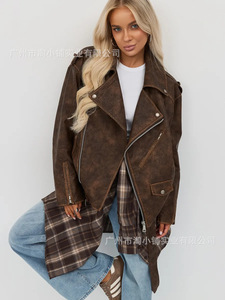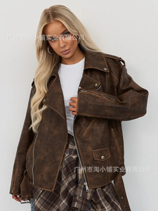 新 2025 新しい女性のヨーロッパとアメリカンスタイルの模造革ルーズシルエットエポレットバイカージャケットショートベルトジッパージャケット