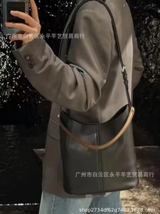新款margiela水桶包头层荔枝纹牛皮手提包大容量通勤百搭斜挎包