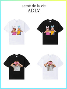 ADLV夏季短袖t恤新款娃娃脸印花上衣圆领体恤同款情侣装女潮牌