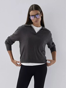 Модный свитер с отворотом ヨーロッパとアメリカのラペルセーター