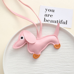 韓国版 diy ダックスフント犬レザーペンダントかわいい ins 子犬バッグペンダントストラップカップル車のペンダント在庫あり
