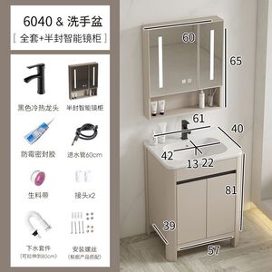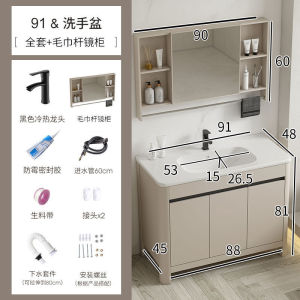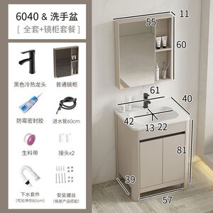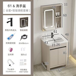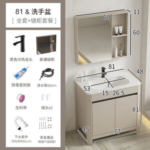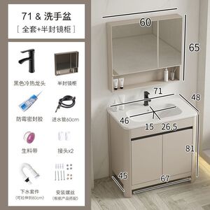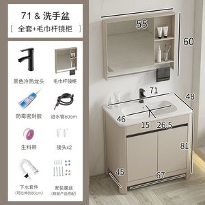 卫生间太空铝浴室柜组合洗漱台陶瓷一体洗脸池落地式洗手盆柜简约