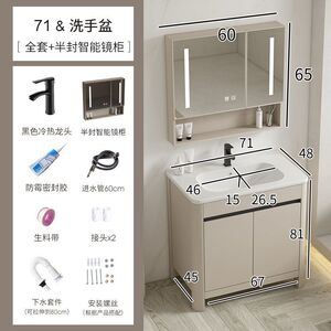 71*48 CM (1198圆角大门)-盆柜全套+半封智能镜柜