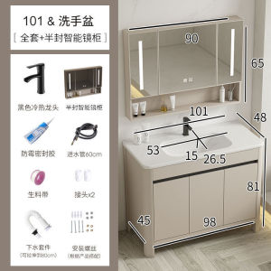 91*48 CM (1198圆角大门)-盆柜全套+半封智能镜柜