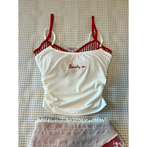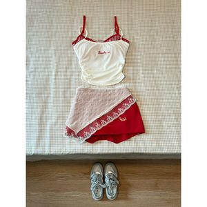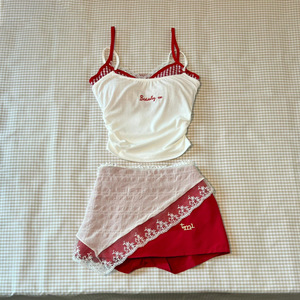 2025年新作夏韓国風女性用韓国風胸巻きレイヤードレースサスペンダースカート4点セット