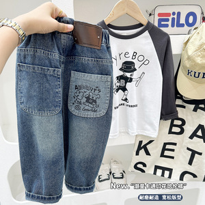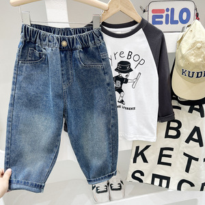 男の子ジーンズ 2025 春と秋の新しい子供の秋のパンツハンサムな韓国スタイル中大型子供カジュアルズボントレンディ