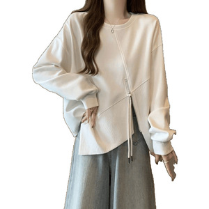 大きいサイズ 150kg 不規則なデザインのジッパー付き長袖スウェットシャツ、女性用、春と秋のゆったりとしたスリムでシックなトップス