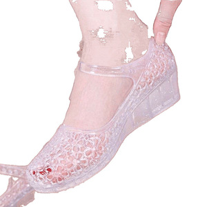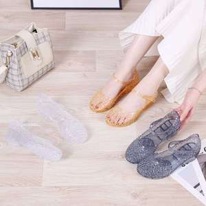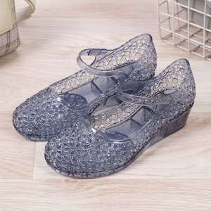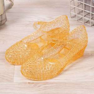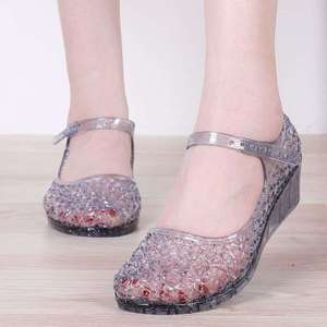 夏の女性の靴クリスタルサンダル女性のウェッジヒールミッドヒールワンラインバックルつま先女性ゼリー新しいファッションアウターウェア多用途