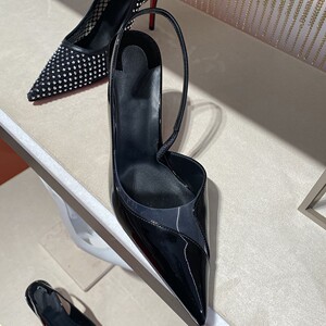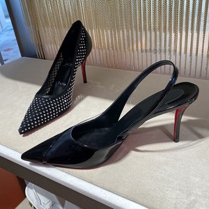 CL 同スタイル浅口バックシングルシューズ 2025 春と秋の新作赤底靴透明スプライシングポインテッドトゥハイヒール女性のスティレットヒール