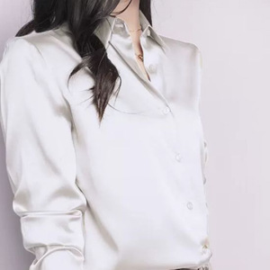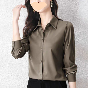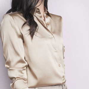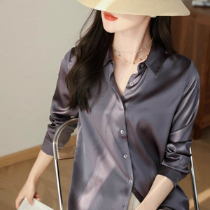 フレンチハイエンドサテン模造シルクシャツレディースジーンズトップ2025ルーズ通勤シャツ