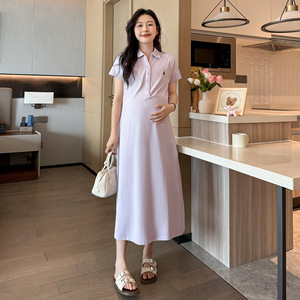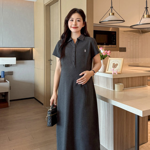 マタニティドレス夏ポロラペルファッションカジュアル大きいサイズロング年齢軽減夏薄いマタニティドレススカート