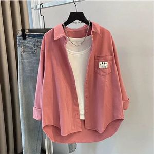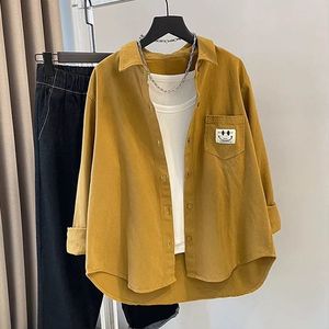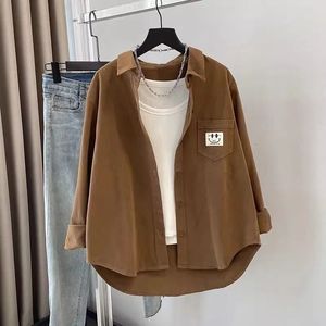 スマイリーポケットデザインシャツレディース長袖秋冬新作ゆったり万能カジュアル起毛レイヤードシャツジャケット