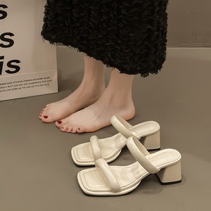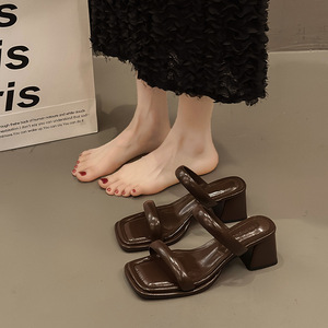 高跟凉拖鞋女外穿2025新款夏季粗跟法式小众气质配裙子一字带凉鞋