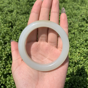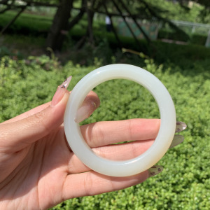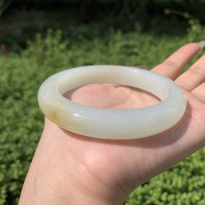 天然正品和田玉俄料糖白玉圆条手镯内径57mm俏糖色玉镯子在线批发