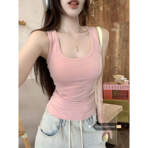 ピンク キャミソール レディース 夏 ニッチ アウター スポーツ I 字 スリム ホワイト 美背中 ノースリーブ トップ