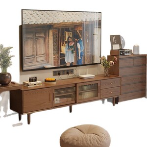 【無垢材】テレビキャビネット 2.1M-ウォールナット色 取り外し可能なバックパネル付き