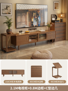 2.1M テレビキャビネット + 0.8M サイドキャビネット + C 型サイドテーブル (ウォールナット色) 3.3M 以上のリビングルームに最適