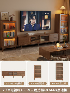 1.8M TVキャビネット + 0.6M 3層サイドキャビネット + 0.6M 4層サイドキャビネット (ウォールナット色) 3.0M以上のリビングルームに最適