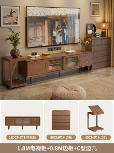 1.8Mテレビキャビネット+0.6M三層サイドキャビネット+C型サイドテーブル(ウォールナット色)2.8M以上のリビングルームに最適