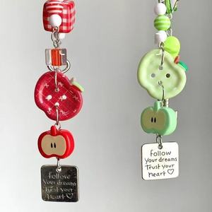 クリエイティブレッドアップル携帯電話チェーングリーン五芒星かわいいフルーツペンダント風鈴ペンダントペンダント Guben チェーン