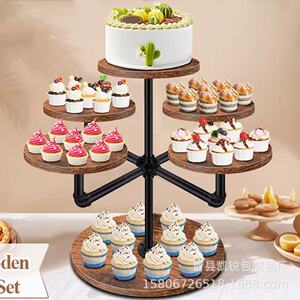木质蛋糕甜品架桌面多层纸杯甜点展示架木质儿童节派对零食蛋糕架