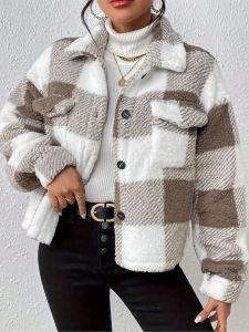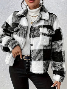 2025 冬のチェック柄ウールの女性のコートテディベアジャケット女性のエレガントなスタイルの模造毛皮のコート